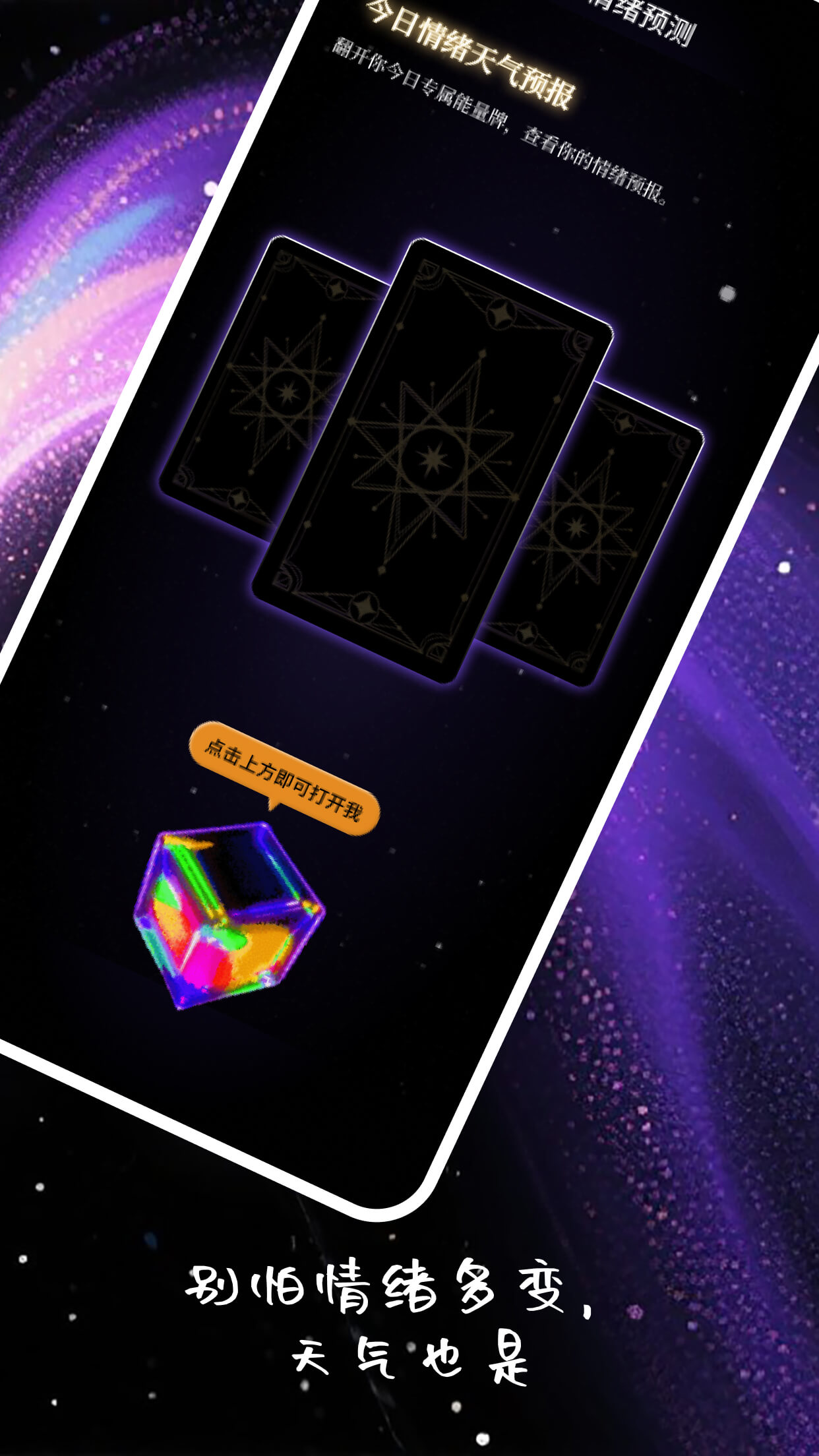 小时候,我们总喜欢藏一个秘密盒子。里面放着心爱的石头、写给未来的信,或谁也不知道的小心愿。 长大后,那个盒子被遗忘了,但那些情绪、渴望与不安,一直都还在。 这一次,我们把它带回来了。 以“宇宙魔法盒”为灵感,创造一个既熟悉又奇异的疗愈空间。你只需轻轻点开盒盖,心绪就会像星尘一样缓缓流动,被看见,也被理解。